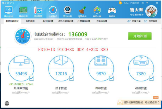 由上圖可以看出,澤創(chuàng)多網卡網安主板ZC-H310QV主板配酷睿九代I3 9100處理器搭載8G筆記本內存32G固態(tài)硬盤跑出了驚人的136009分!性能都可以趕超7代的I5處理器了,如果采用雙通道內存,再配一個大容量高速固態(tài)硬盤,得分還可以更高!